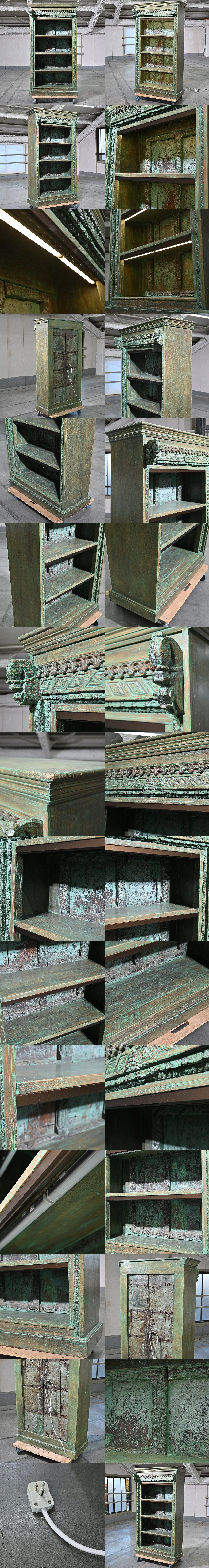 アジアンテイスト キャビネット シェルフ 大型 4段 照明 彫刻 装飾 ビンテージ 収納 棚 アンティーク風 リビング 店舗 ディスプレイ 寝室 收藏