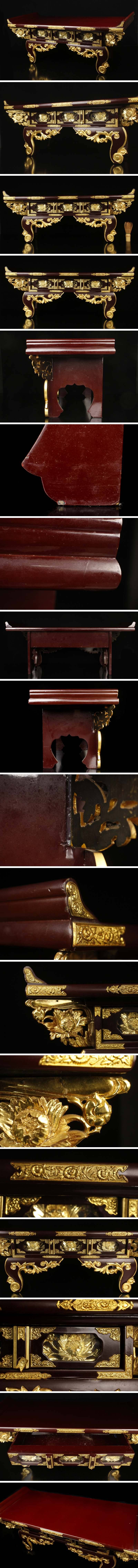 【LIG】時代仏教美術 木造漆塗金彩 花唐草文前卓 74㎝ 経机 寺院引取品 2509995 收藏