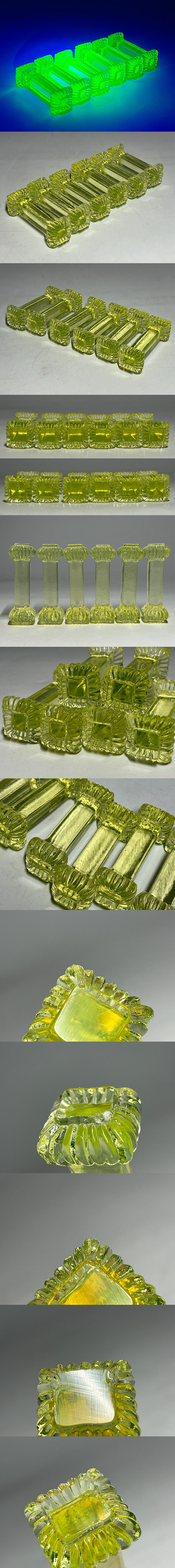ウランガラス 四角形 置物 6点 *(1点にカケ有) ◆商品詳細 寸法(約):9.5x3(高×幅cm) ※寸法に若干の誤差が生じる場合もございます。 汚れ、擦り傷、1点にカケ、3点に数ヶ所チップがありますので、 ご承知の上入札お願いします。 状態等画像にてご確認の上ご入札よろしくお願いいたします。 ◆発送先等のご連絡とお支払いについて ※発送先等のご連絡 落札時から48時間以内にお願い致します。 ※お支払 かんたん決済の期限内にお願い致します。 ※複数点落札時にまとめて取引の場合(72時間内)に、 まとめて取引の取引手順(落札者方の操作)を参考にお願い致します。 梱包したサイズを測って、地方によって送料を決めますので、よろしくお願いします。 ◆掲載画像について ※画像は現物を撮影しておりますが、照度、遮光、モニターによっては実物と 色目が異なって見えることがありますのでご注意ください。掲載画像では確認 できない傷や汚れがある可能性もございます、あくまで 中古品であるということをご承知の上、御入札をお願い致します。 ◆補償について 商品到着後はすぐに状態の確認をお願い致します。 商品の破損等がございまし たら、箱や梱包材など全てそのままの状態で保存し、お早めにご連絡ください。 (到着日から一週間以上経過、梱包材の廃棄済み等の場合、保証は致しかねます のでご注意ください。) ◆返品について 思っていたイメージと違う、などのお客様主観による返品はお受けできません ので、予めご了承ください。ノークレーム、ノーリターンでお願いします。届 いた商品が商品説明と著しく異なる場合(寸法、キズ記載ミスなど)のみ承り ます。早めにご連絡ください。 ◆注意事項 当方の希望価格と隔たりがある場合は、終了前にやむなく取下げさせて頂く場 合がございます。 ※商品ご落札翌日から4日間以内にご連絡が取れない場合は、入札取消の処置を 取らさせていただく場合がございます。 ※評価の悪い方は取り消す場合がございます。 ※原則として当方の不備以外のキャンセル・返品・返金は受け付けておりません。 以上の点を予めご了承頂いた上で、入札・落札お願い致します。 ◆発送方法 ▼ゆうパック(補償あり/追跡あり) 梱包後のサイズ:~約60cm ※送料全国一律880円 (但し北海道、沖縄、離島は+500円いただきます。) 発送元は静岡県となります。 ( 商品の組み合わせによっては同梱をお断りさせていただく場合があります。) ※大型商品について 郵便局の規定を超える商品の場合は、佐川急便またはヤマトでの発送となります。 |