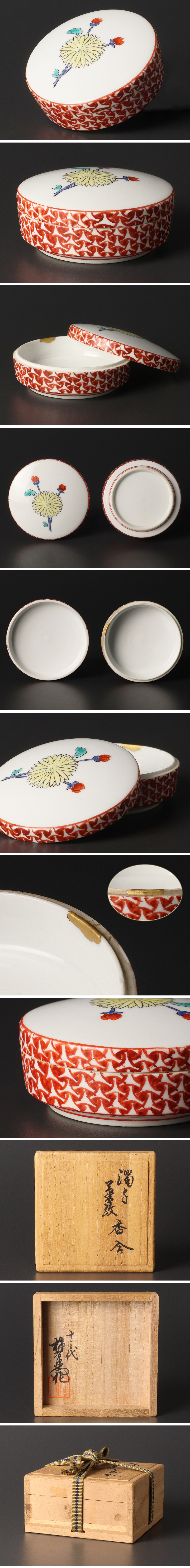 | 【古美味】人間国宝 十二代酒井田柿右衛門 濁手菊紋香合 茶道具 保証品 |