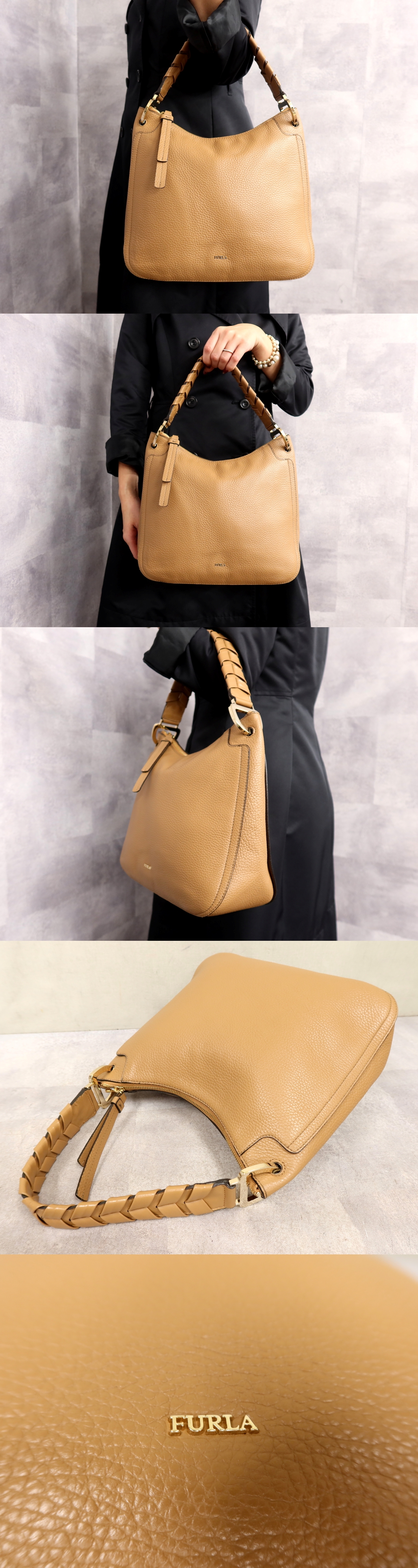 ●超美品●FURLA フルラ●リアルト●ロゴ金具●カーフ レザー 本革●ハンド バッグ●ベージュ●ゴールド金具●腕掛け●かばん●Js63089 收藏