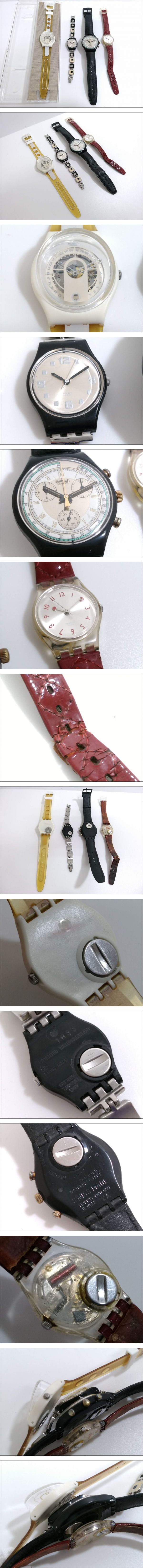 ※佐川急便の場合、離島など別途中継手数料がかかる地域が御座います。 その場合はお振込みを追加でお願いする場合が御座います事、 事前にご了承の程、宜しくお願い致します。 [商品名] 1円スタート 【美品含む】SWATCH スウォッチ クォーツ 腕時計 合計4点セット [参考サイズ:左の時計] ケース(リューズ込み)約4×3.5cm, 風防(ガラス/樹脂面)直径約3cm, ベルト幅約1.8cm, 腕周り約14.5-19.5cm, ホール数8個 [状態] 風防含む全体に小キズ、汚れ、 ベルトにちぎれのある物が御座いますが、