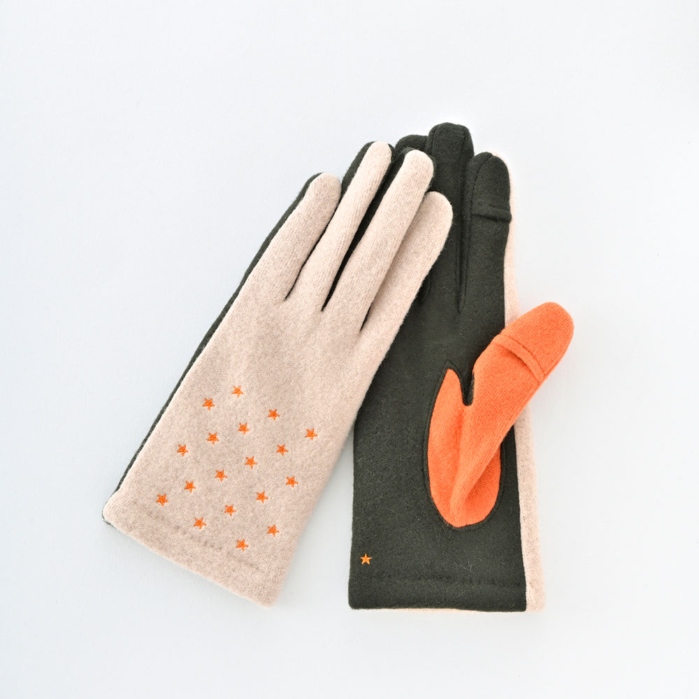 | 商品説明 | ・・たくさんの星の刺繍と、甲・掌・親指でカラーが違う、遊び心のあるPOPなジャージグローブ。 ・裏地は、やわらかくあたたかなマイクロボアを使用。 ・親指・人差し指にはスリットが入っている為、指先を出し入れでき、手袋を着用したままタッチパネル操作も可能。 |