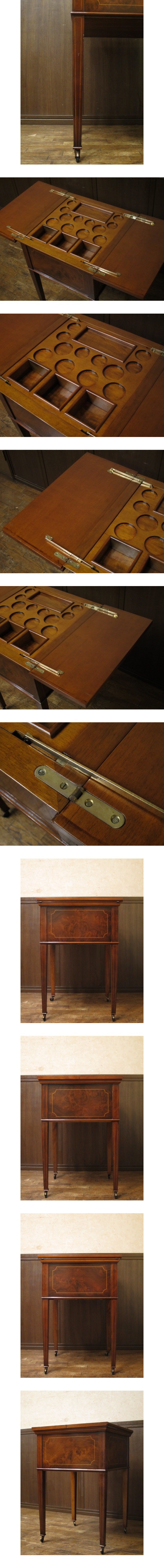 英国製 マホガニー材 ストリンギング 線象嵌 キャスター付き カクテルキャビネット/カクテルテーブル/ワゴン/イギリス/アンティーク/西洋 收藏