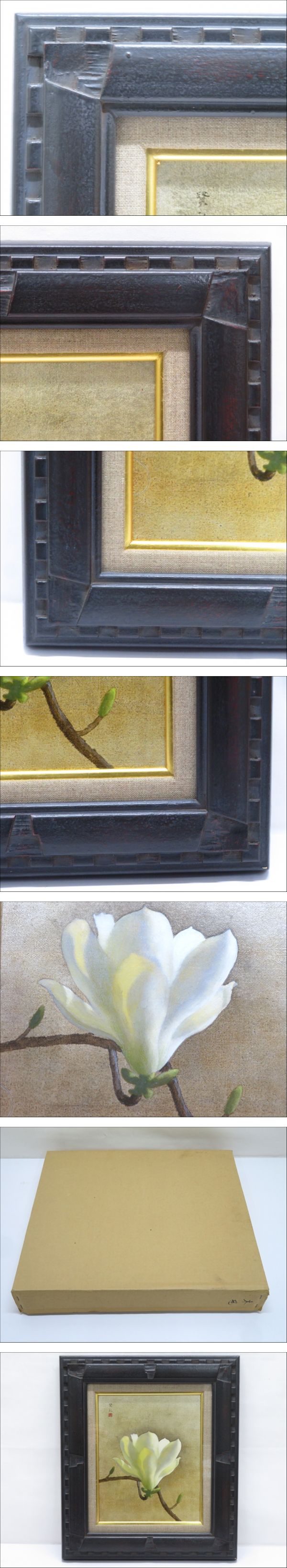 ◆◇【真作】石田賢礼『木蓮』油彩 3F号 鉄黒仕上 額寸42.5cm×37.5cm リアリズム 絵画 外箱 額装付◇◆ 收藏