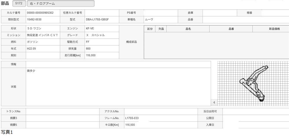H22年 L175S ムーヴ 右 フロントロアアーム /送料 ミニ/905302 收藏