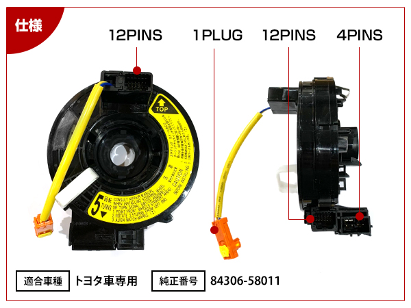 トヨタ カルディナ AZT240/ST246/ZZT241 H14/9~H19/6 スパイラルケーブル 84306-58011 新品 OEM クルコン ステアリングスイッチ等 收藏