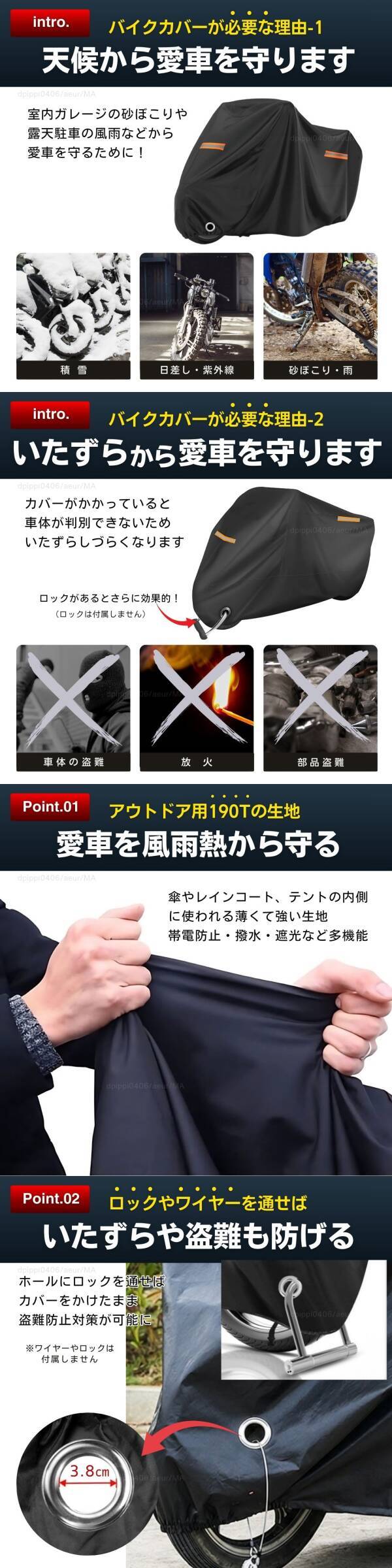 バイクカバー 2XL XXL 防水 大型 原付 バイク オートバイ スクーター バイクシート 125 250cc 防風 防塵 防犯 UVカット 盗難防止 カワサキ 收藏