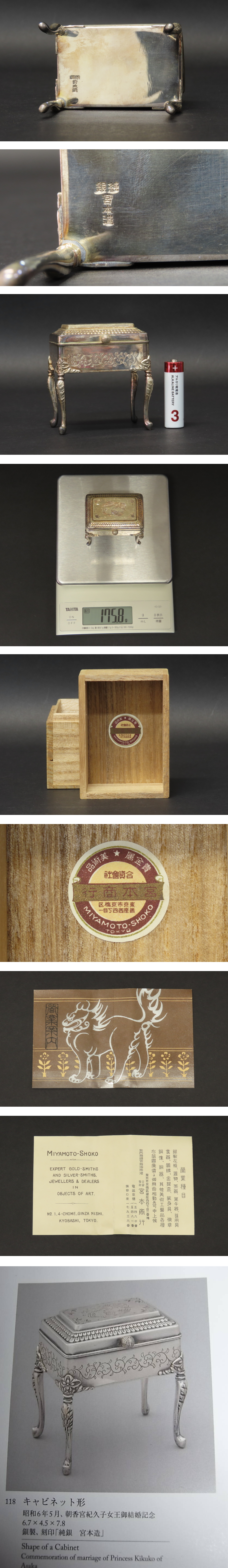 【月】【ボンボニエール・東園(久邇宮)栄子女王 特集05】朝香宮紀久子女王殿下 鍋島直泰侯爵 御結婚記念 キャビネット形 純銀 宮本造 收藏