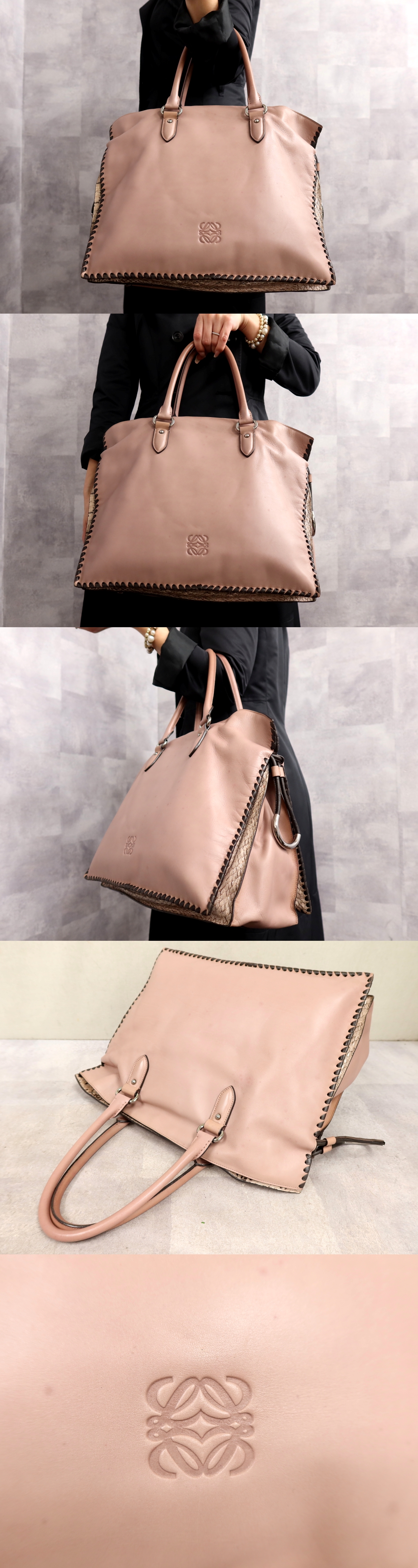 ●美品●LOEWE ロエベ●フラメンコ●アナグラム●ロゴ型押し●カーフ レザー 本革●トート バッグ●ダスティピンク●SV金具●A4●Js65469 收藏