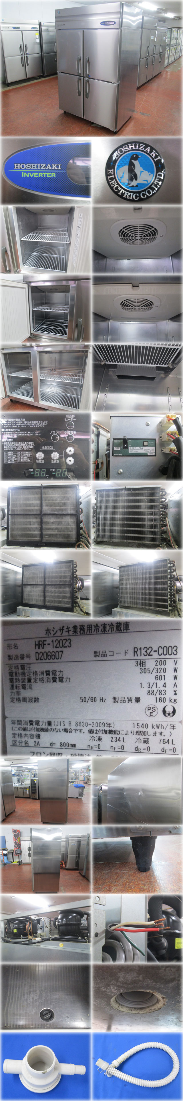 ホシザキ 1:3冷凍冷蔵庫 HRF-120Z3 1200x800x1900mm 998L(冷凍234L:冷蔵764L) 三相200V インバーター制御 【長野発】 收藏