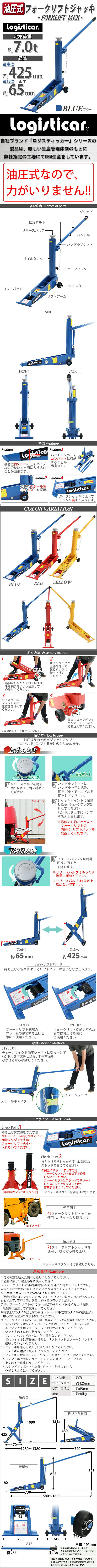 | 商品名 | 送料無料 油圧式 フォークリフト ジャッキ 定格荷重約7t 約7000kg ブルー 油圧式 油圧ジャッキ 低床 フォークリフトジャッキ フロアジャッキ ガレージジャッキ 低床ジャッキ ジャッキアップ メンテナンス タイヤ交換 オイル交換 手動 工具 fljackfj7tbl |