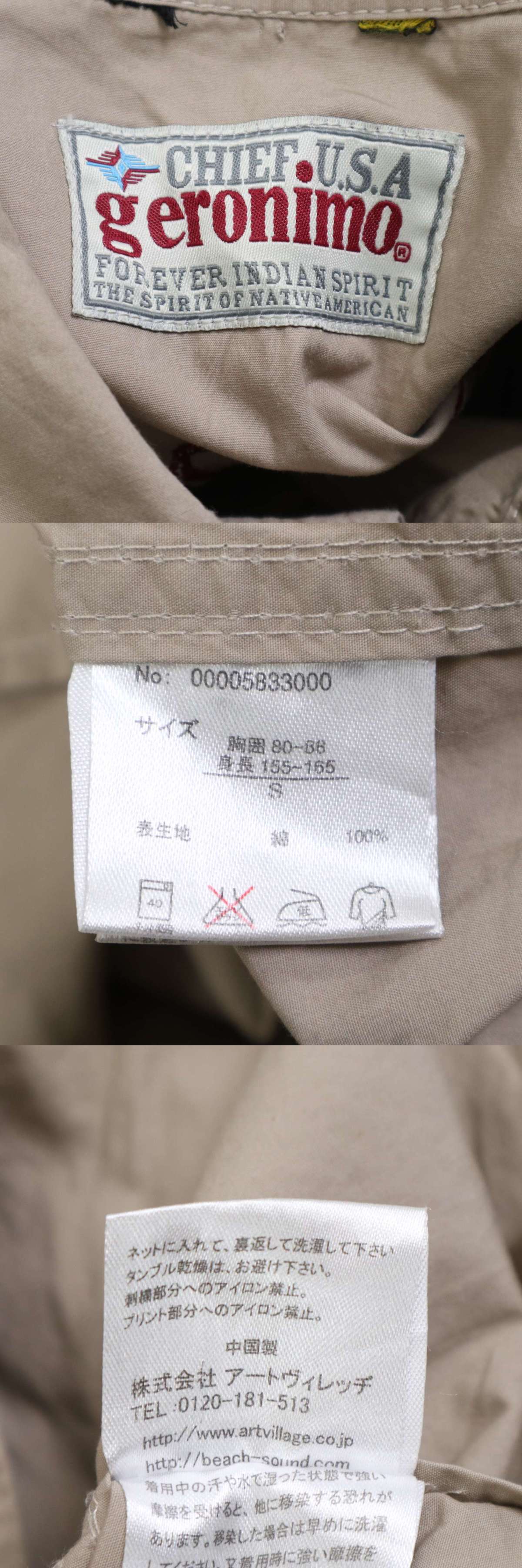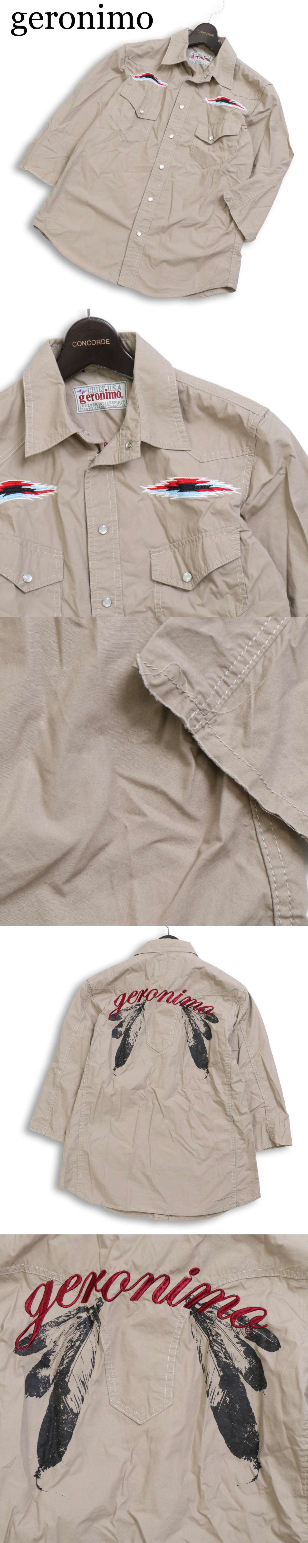 geronimo ジェロニモ 春夏 バック ロゴ刺繍 フェザープリント ネイティブ柄★ 7分袖 ウエスタン シャツ Sz.S メンズ 收藏