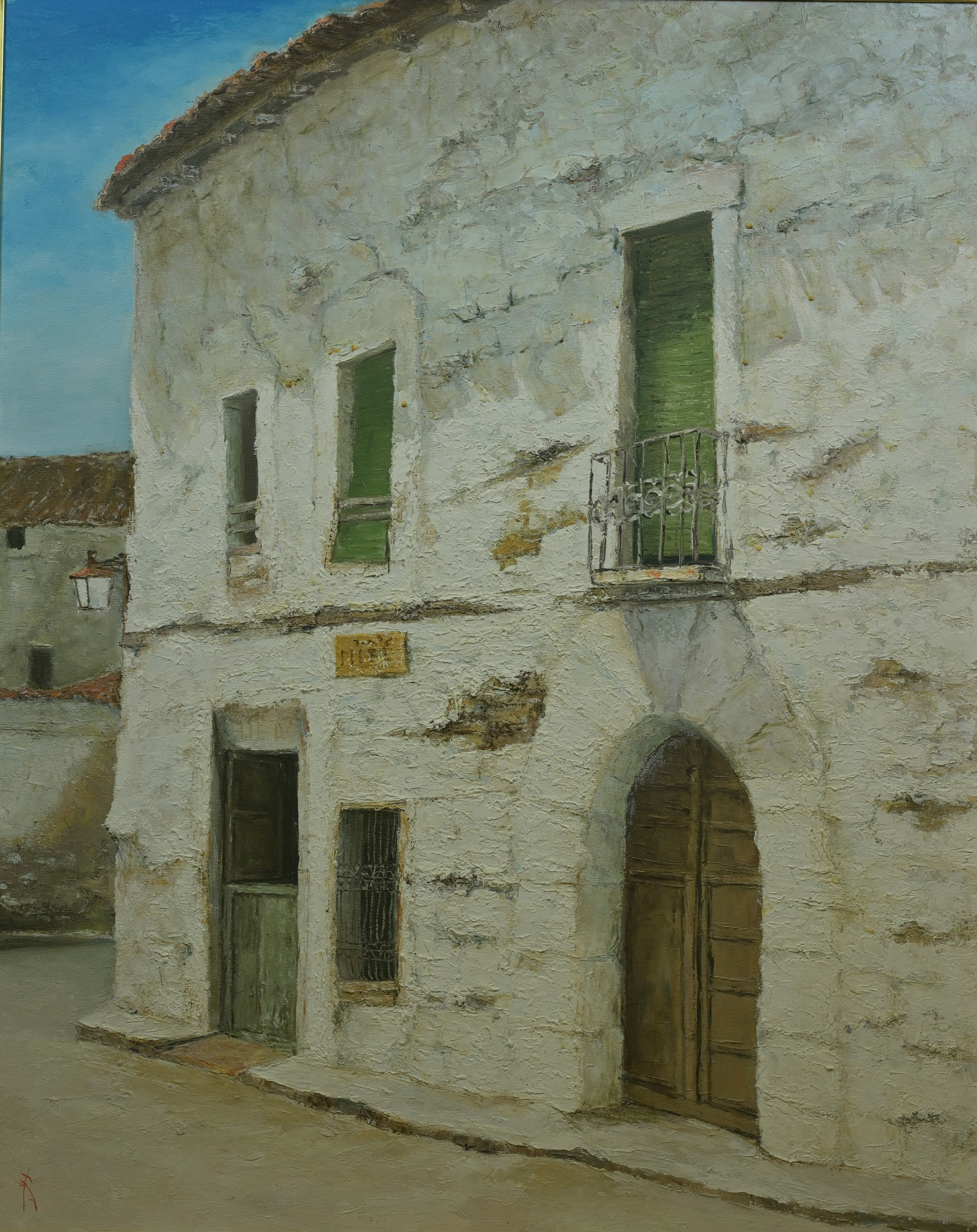 【真作】澤口友彌 「はちみつ屋 アルカリア」1986年 油彩 額装 F25号 森谷重夫に師事 スペイン風景 リアリズム 岐阜県の人 Q 收藏