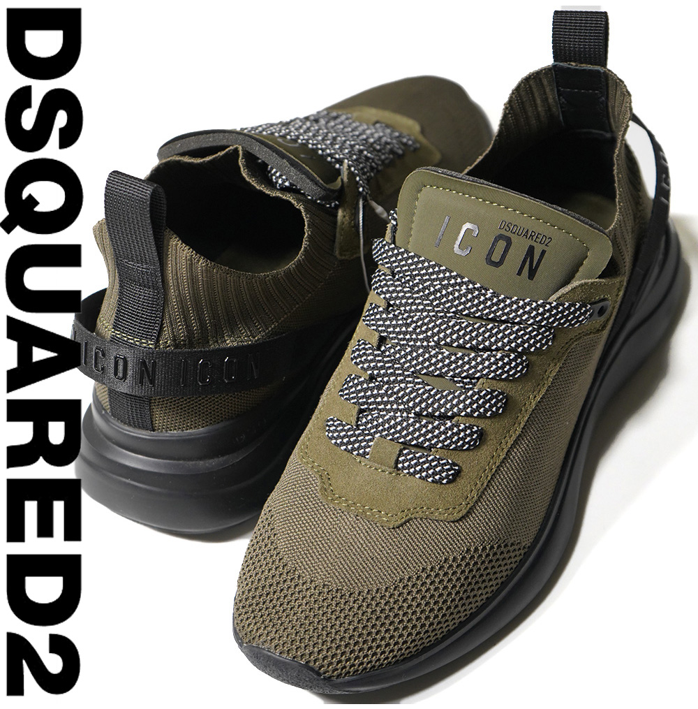 定価68,200円■新品【DSQUARED2】ディースクエアード/履き心地抜群/FLY/ICONロゴフライニットスニーカー42/日本26.5-27cm相当/幅広 收藏