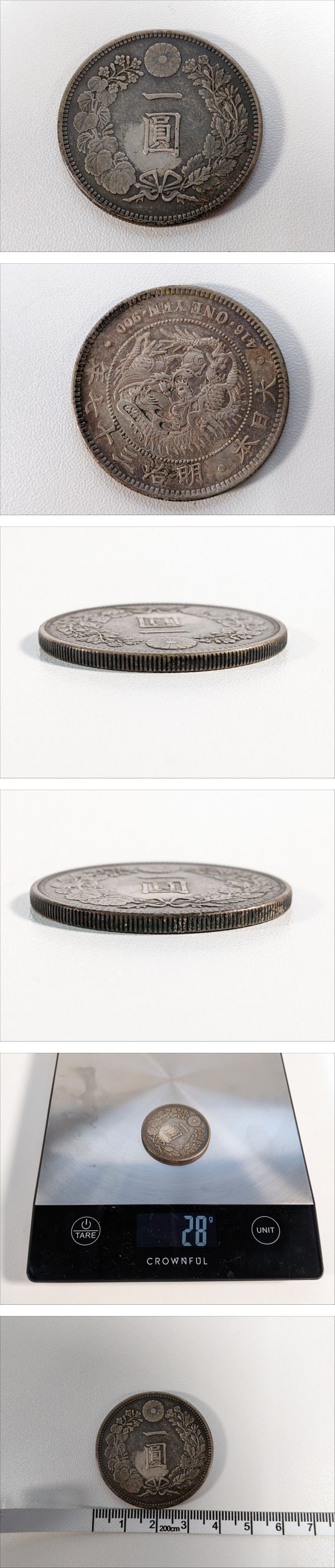| 商品説明 | ★最後までお読みいただき、ご理解の上でのご入札をよろしくお願いいたします。 【GC013】 1圓銀貨 明治37年 硬貨 レトロ コレクション 【商品状態】 基本的に中古品の為、スレや傷・汚れなどございます。 多数商品がある場合、傷や汚れを写真に載せきれない可能性もございます。 あらかじめご理解・ご了承の上入札をお願いいたします。 また、細かくクリーニングしている訳ではありませんので 状態を極度に気にされる方、神経質な方は入札をお控えください。 ■写真に写るもののみの販売となります。 写真にないものは付属いたしません。 画像をご確認の上、商品の状態に納得して頂いた方のみ入札をお願いいたします。 【サイズ】 直径 約3.5cm 厚さ 約0.2cm ※素人採寸のため多少の誤差はご容赦ください。 【取引ナビの対応日時】 ■平日9:00-18:00となります。※土日祝日は休業 【発送方法】 発送は佐川急便よりお送りいたします。 原則ご入金後、発送まで3日~7日お時間を頂いております。落札商品の量によって発送までのお時間が前後してしまう可能性があります。商品をお急ぎの方はご注意ください。 ※発送元地域が異なる商品の同梱はできません。 また土日祝日はの取引全般をお休みしておりますので発送/連絡はできません。いつ頃発送するのか等の催促はおやめください。 ※沖縄・離島の方は【中継料】が発生し送料が高額になります為、佐川着払いとなります。 ※中継料が発生した場合、追加で中継料分の不足送料を請求させて頂きます。必ずご自身のお住まいをご確認頂いてから入金をお願い致します。 【直接引き取り】 引き取り場所は群馬県前橋市になります。 詳しいご案内場所は落札後、取引ナビにてご連絡いたします。 受付時間:平日9-18時 ■手順 ① 取引情報の入力 ② yahoo!かんたん決済で支払うをクリック ③ 配送方法を直接引き取り0円を選択し決済を行ってください。 ④ 取引メッセージに 直接引き取り希望と、希望日、希望時間帯をお知らせください。 後程、ご案内の通知をいたします。 【注意事項】 ■発送連絡と同時に評価も入れております。評価不要の方はご落札時にメッセージでお知らせください。 ■商品到着後、破損があった場合は配送業者へ一度ご連絡をお願い致します。 ■発送方法の変更はお受けできません、また送料に納得がいかないままの入札はご遠慮ください。 ■商品到着後7日以上経ってからの返品・返金は対応出来ません。品物が到着次第すぐに商品の状態をご確認ください。 ★他にも沢山の商品を出品しております。 ご興味のある方は、他の商品も是非ご覧下さい。