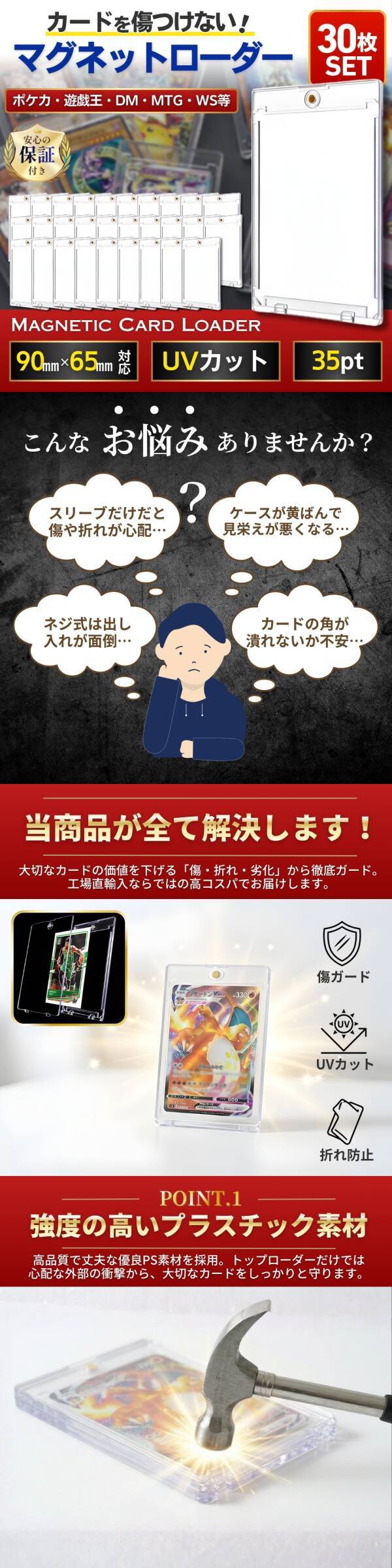 マグネットローダー 30枚 35pt トレカ カードケース 高品質 透明 スリーブ ポケカ 遊戯王 デュエマ 保護 収納 防折 クリア 磁石 新品 ミニ 收藏