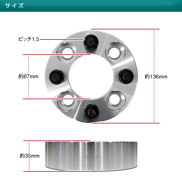 ワイドトレッドスペーサー ワイトレ ホイール ツライチ 4H 4穴 PCD100 P1.5 ナット付 ハブ径 67mm 厚さ 35mm 4枚組 收藏