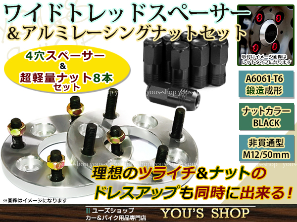 ノート E12 ワイドスペーサー 4H PCD100/M12 P1.25 15mm 2枚 レーシングナット P1.25 50mm 非貫通型 黒 收藏