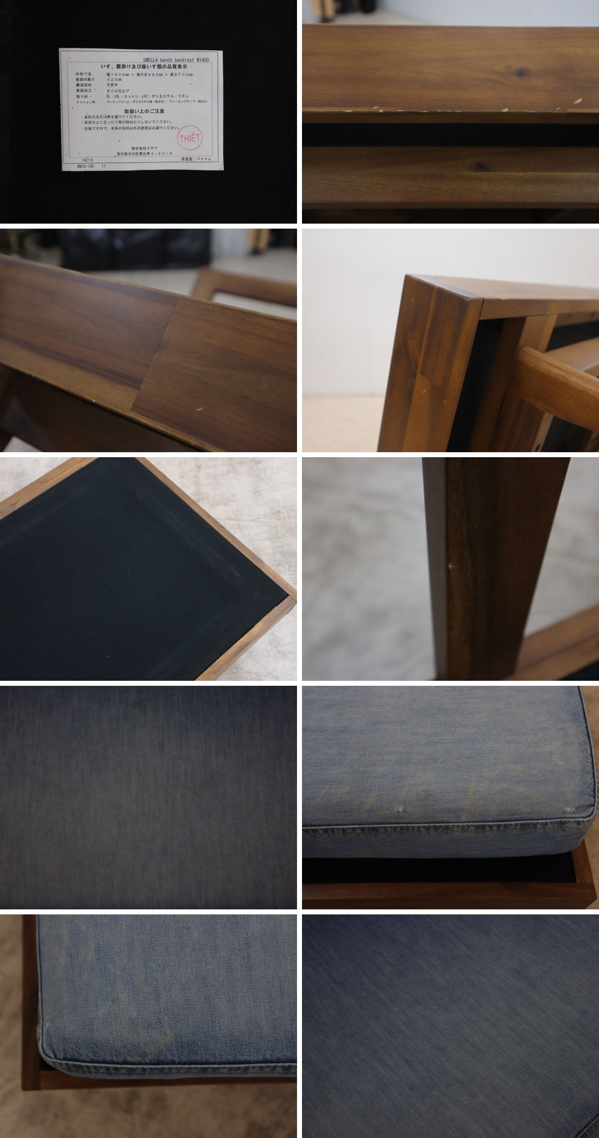 【仕様】 サイズ:約 W1400×D625×H720、SH420、クッションなしの高さ640mm ※実寸のため、多少の誤差はご了承ください。 カラー:ブルー系(画像では100%正確では御座いませんので気になる方は世田谷区船橋の倉庫でご覧頂けます。色味による返品・返金は一切お受けできませんのでご了承の上ご入札ください。) 材質:カバー/コットン、内部/ウレタンフォーム・ポリエステル綿・ウェービングテープ、フレーム/アカシア・アイアン、脚部/アカシア 仕上げ:フレーム・脚部/オイル仕上げ 重量:約 24kg 参考価格:65,780 円 |