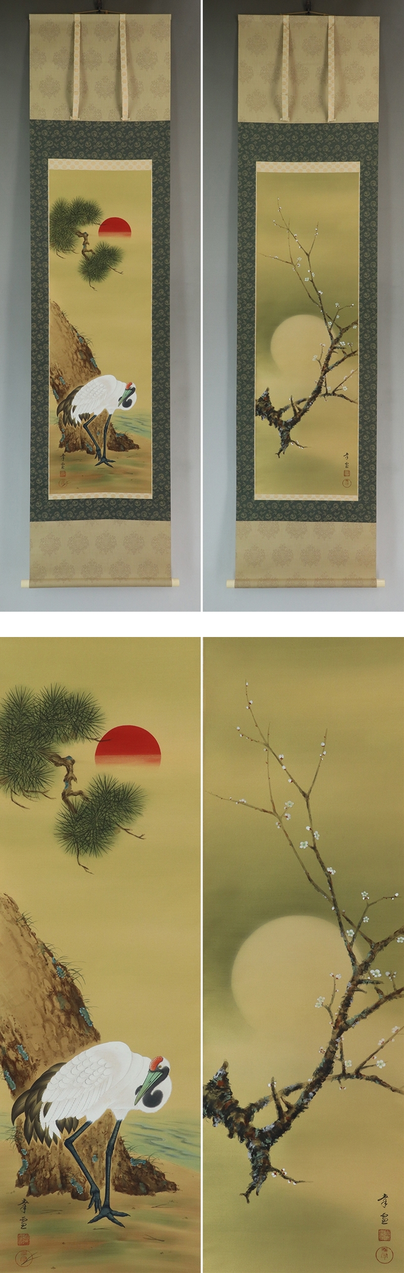 №2205075【真作】国井幸雪【双幅・日月図】◆絹本◆共箱◆掛軸 | |