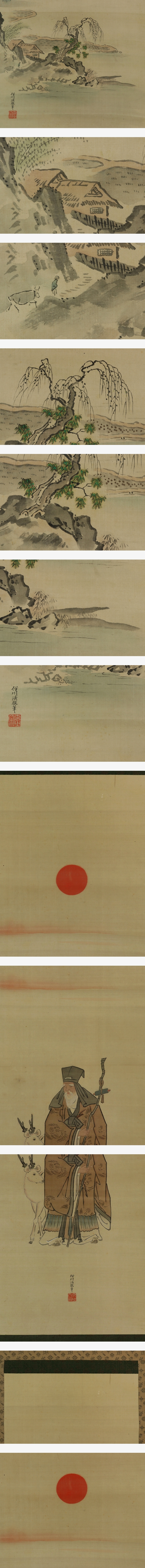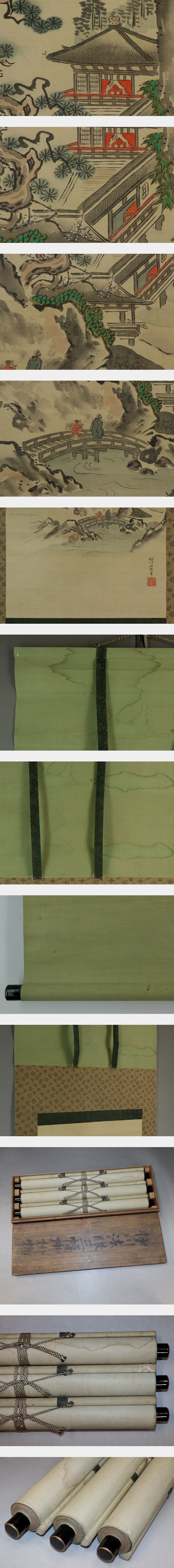 №2205006【真作】狩野伊川【三対幅・慶祝図】◆絹本◆合箱◆掛軸 | |