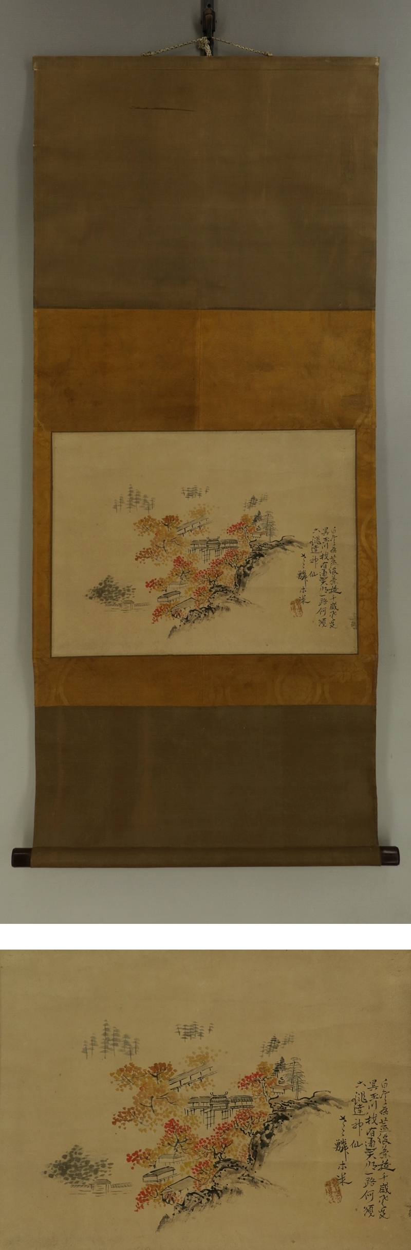 №2402045【模写】青木木米【秋景山水】◆紙本◆合箱◆掛軸 | |