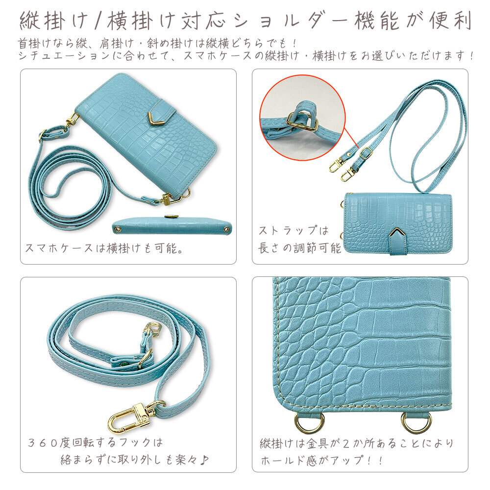 Google Pixel 7a ピクセル7a Pixel7a 対応 スマホショルダー 手帳型 ケース (ブルー) myones 斜めがけ ストラップ 付き クロコ柄 型押し ワニ革調 スタンド機能 落下防止 カード収納 ニュアンスカラー くすみカラー PUレザー