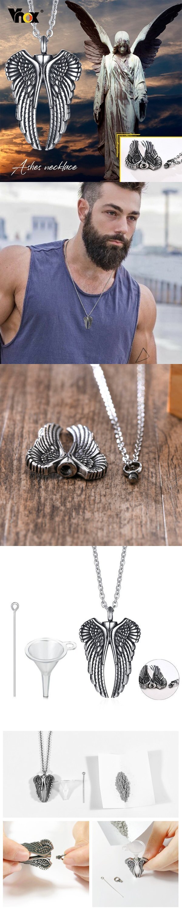 ネックレス ステンレス メタル 翼 ウィング メンズ ロック パンク 天使 羽 火葬 ジュエリー 香水入 アッシュ 保有者 記念 收藏