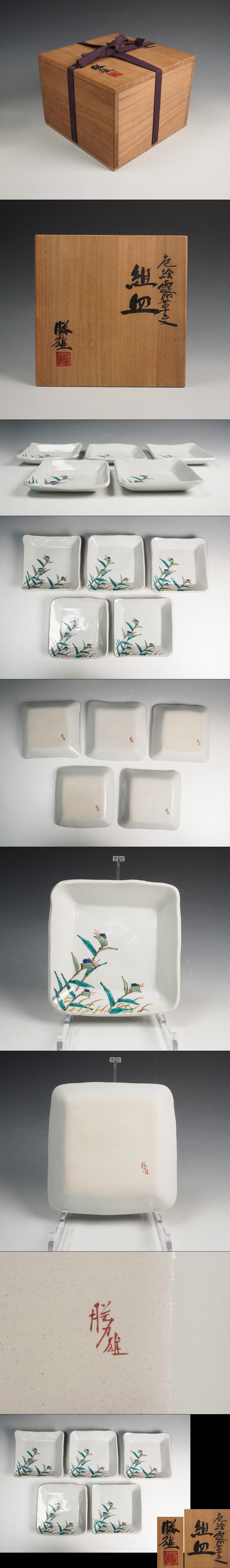 三浦勝雄 作 色絵露草文組皿 五枚 共箱 酒器 保証品 ◆12429YR 收藏