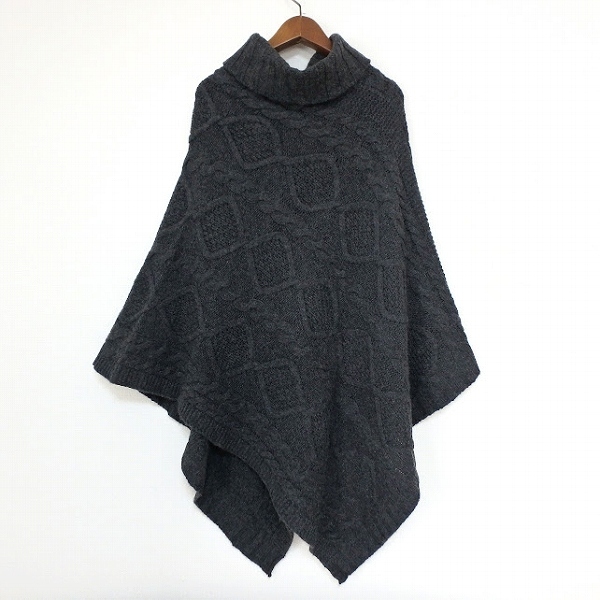 #wnc レリアン Leilian ポンチョ M ダークグレー ニット ハイネック ケーブル編み タグ付き 美品 レディース [911350] 收藏