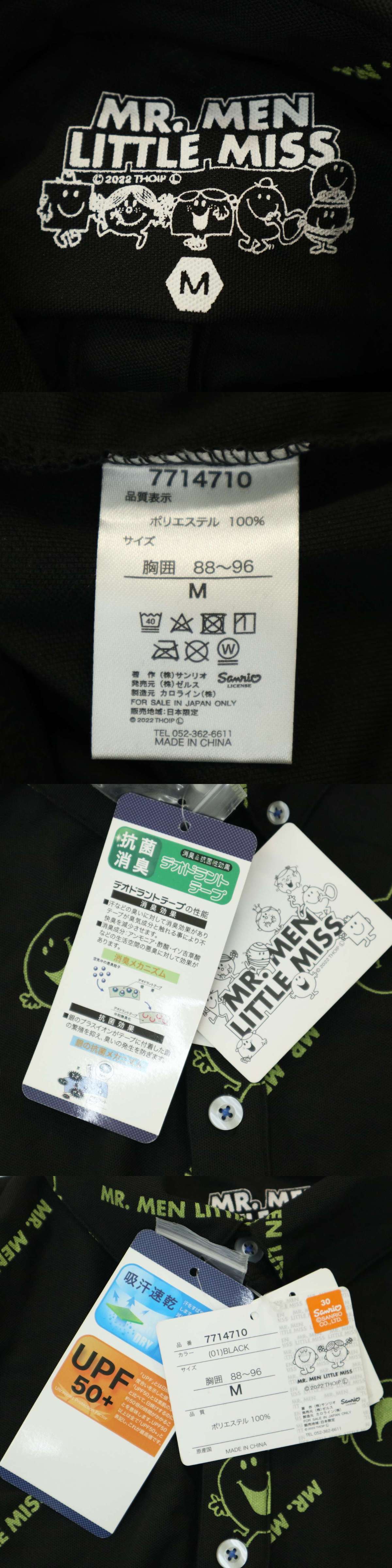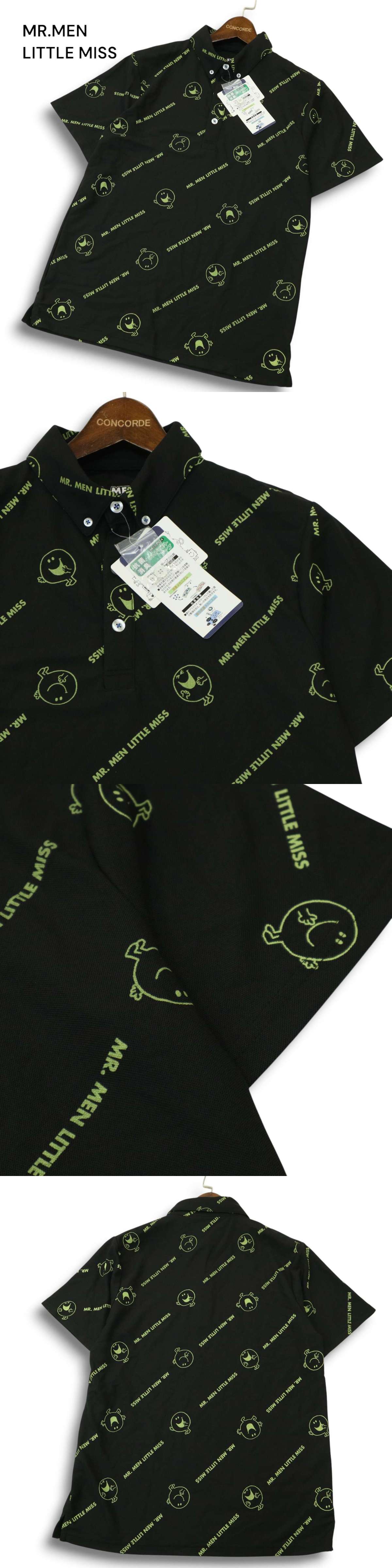 【新品 未使用】 MR.MEN LITTLE MISS ミスターメンリトルミス 春夏 ロゴ総柄★ 抗菌 消臭 半袖 ポロシャツ Sz.M メンズ 黒 收藏