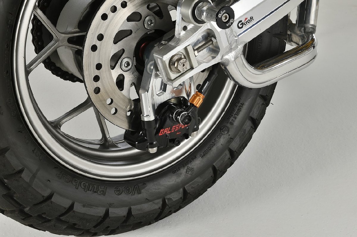 ゲイルスピード「Elaborate リア2Pキャリパー」が装着可能なアルミ削り出しのサポート。