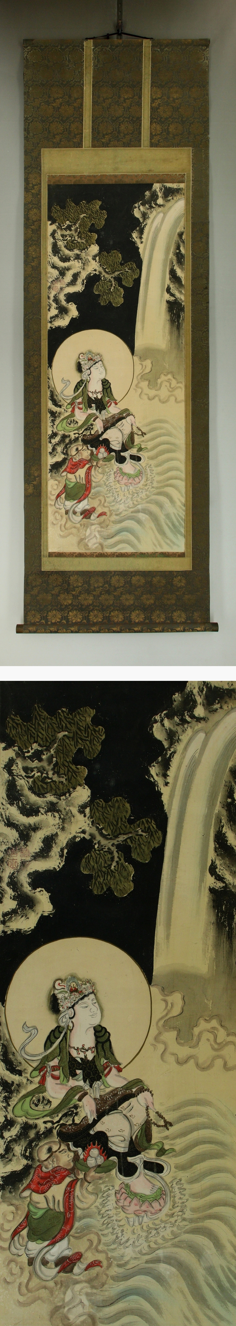 №2505004【模写】伊藤若冲【瀧見観音】◆絹本◆合箱◆掛軸 | |