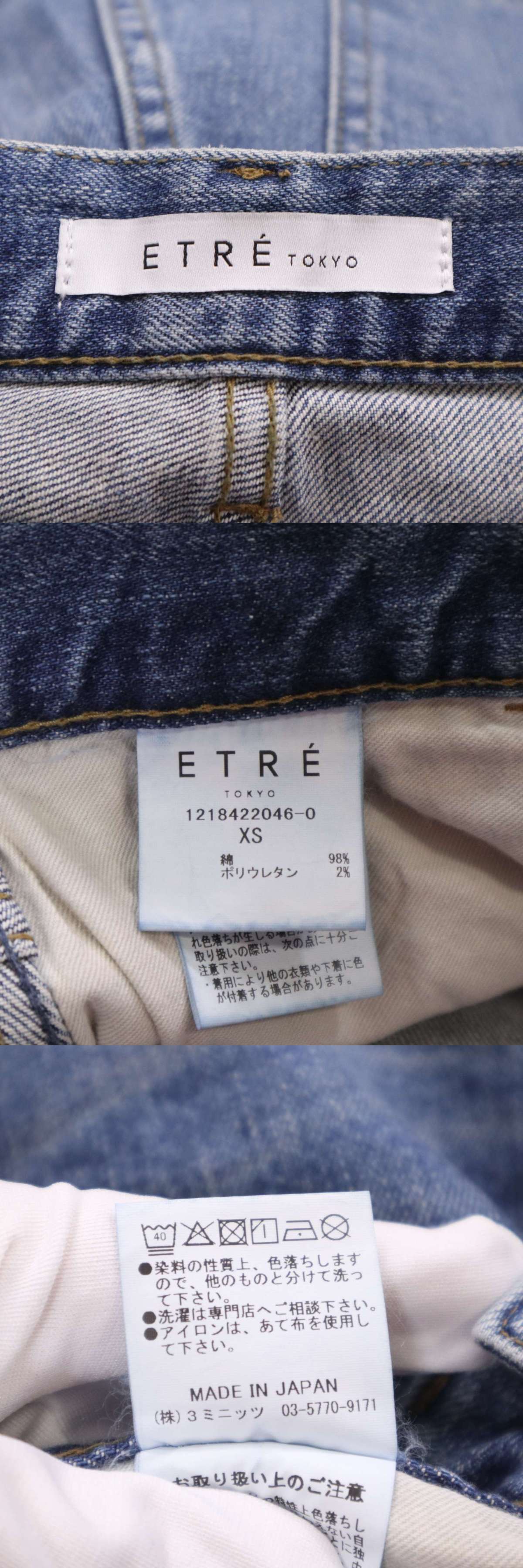 ETRE TOKYO エトレ トウキョウ USED加工★ ハイライズ スキニー デニム パンツ ジーンズ Sz.XS レディース 日本製 收藏