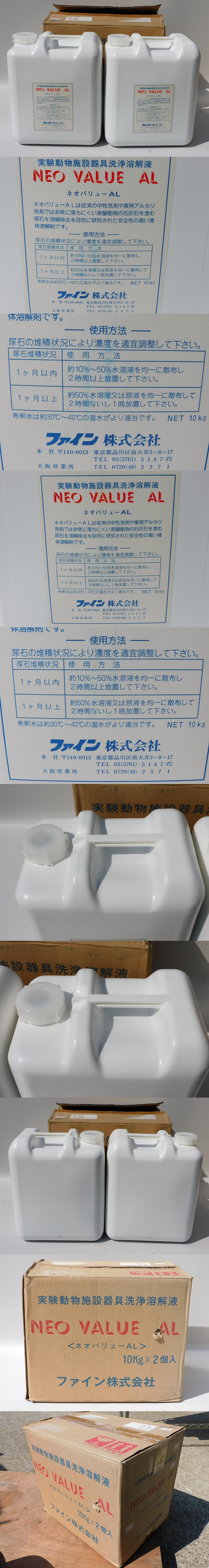 【e2985/2本セット/送料無料】ファイン ネオバリューAL 実験動物施設器具洗浄溶解液 10kg 石灰石を含む尿石を溶解除去 未使用 保管品 收藏