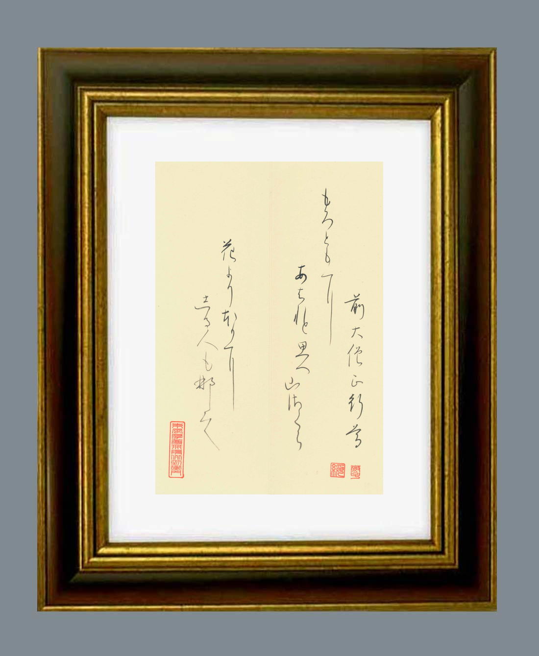 「百人一首」原本の大きさ タテ23.7センチ ヨコ16.4センチ。額縁の大きさは、タテ40.0センチ ヨコ30.0センチ。額縁は新品です。 |