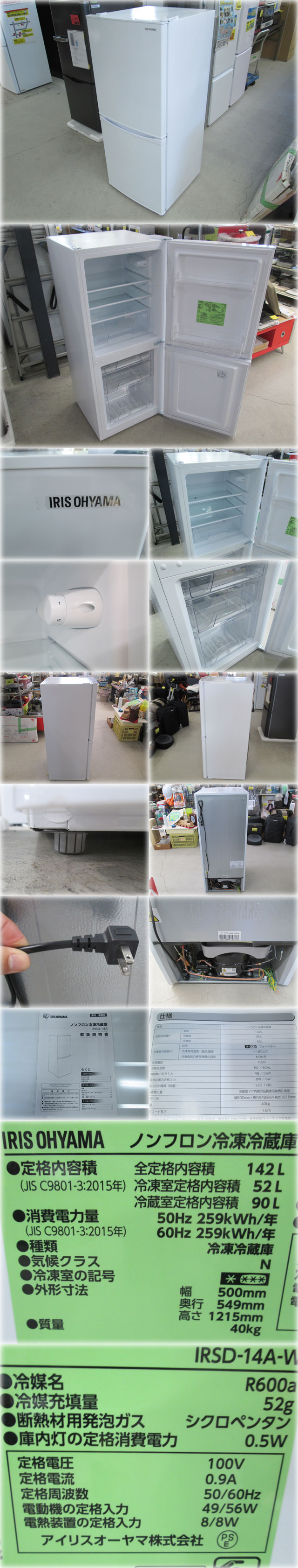 【2024年製】アイリスオーヤマ 2ドア冷蔵庫 IRSD-14A-W 500x549x1215mm 142L(冷凍52L/冷蔵90L) 右開き 【長野発】 收藏