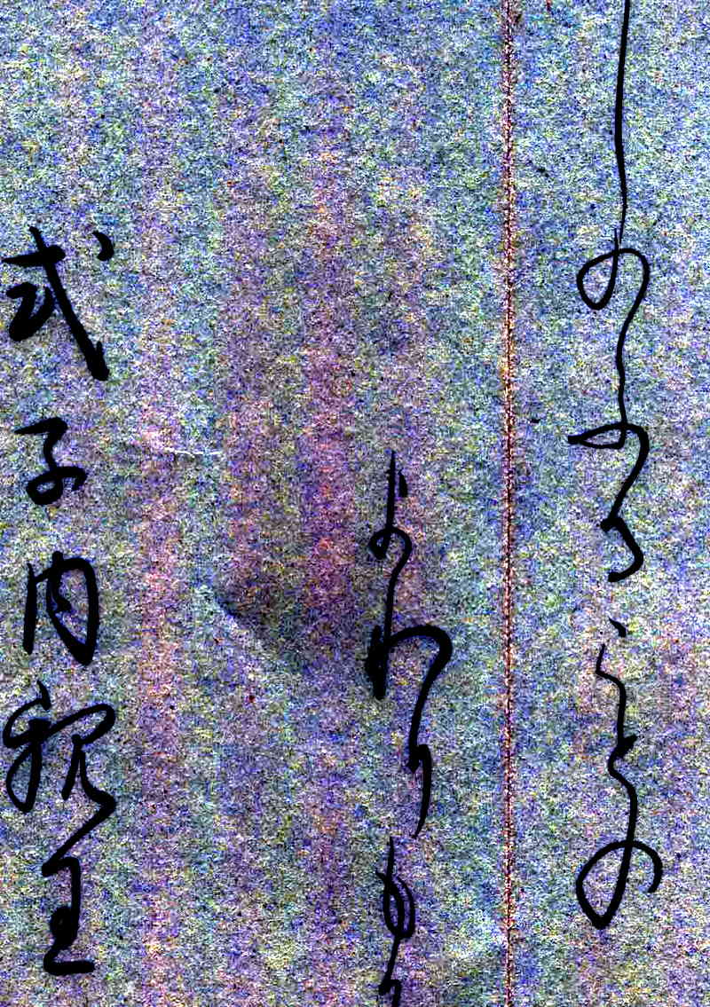 入手したものであることがわかりました。日本の和紙は(す)く製法であるため和紙の繊維が断層画像写真によって一本一本が立体的に見えます。オランダ渡来の髪と性質が異なるのはこのためです。は茶会用の掛軸から外され海外展示のために再表装をしております。掛軸や屏風にすることが可能なように、「Removable Paste(再剥離用糊)」を使用しているため、自筆の書に影響をあたえずに、容易に「剥離」することができるような特殊な表装となっております。