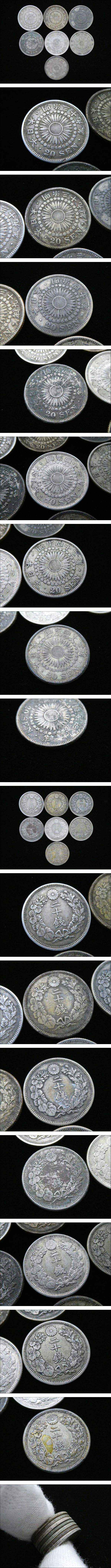 ★商品★ ・旭日20銭銀貨 ★商品詳細★ ・明治39年 (1906年):2点 ・明治40年 (1907年):1点 ・明治41年 (1908年):2点 ・明治42年 (1909年):2点 ※計7点の出品となります。 ★寸法★ ・直径 (約)20.1mm ・厚さ (約)1.3mm ・量目 (約)3.91〜4.04g ★品位★ ・銀800/銅200 ※日本貨幣カタログ参照 ★状態★ ・年代物になりますので経年劣化が見られます。 ・傷、摩耗、汚れ、変色などが見られます。 ※備考※ 直径、量目、細部の作り等から正規品として出品させて頂いております。 ですが、当方は古銭を真贋できる専門者ではございません。 入札者の方は上記をご理解された上で、ご入札をお願い致します。 また商品状態に関しては、あくまでも当方の見立てとなります。 程度には個人差がございますので、予めご了承下さいませ。 |
