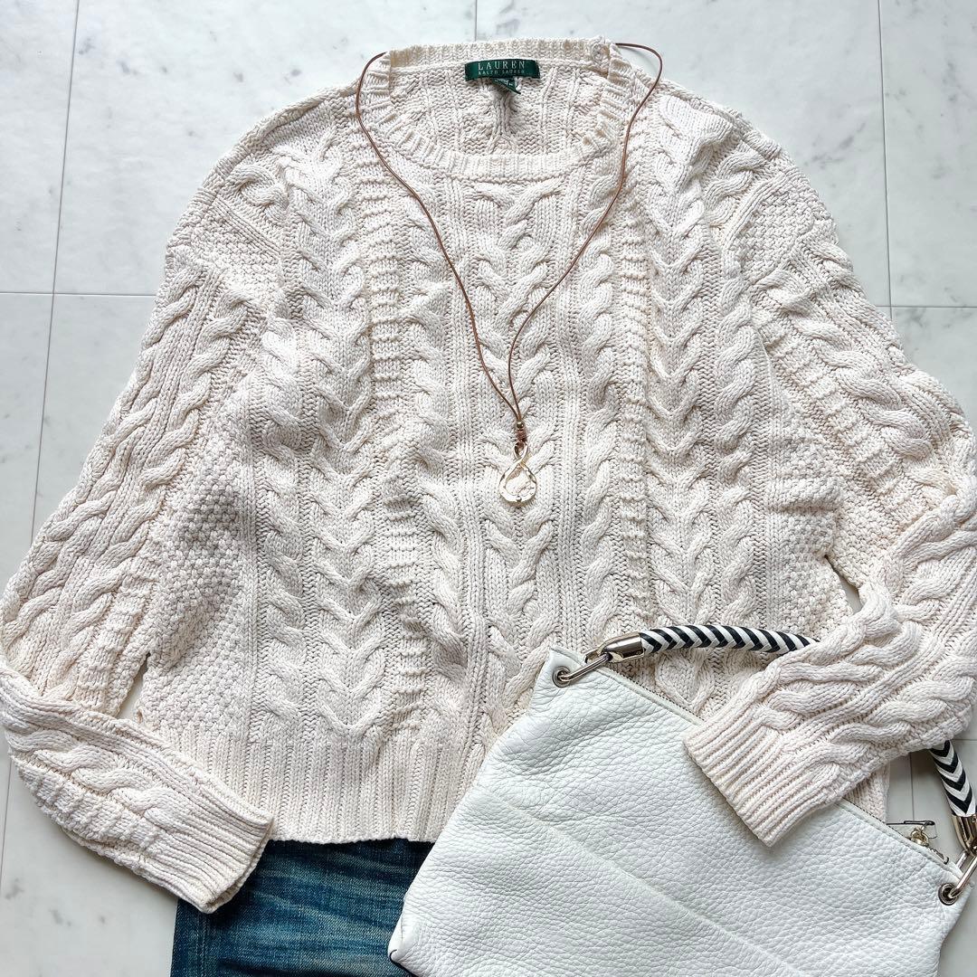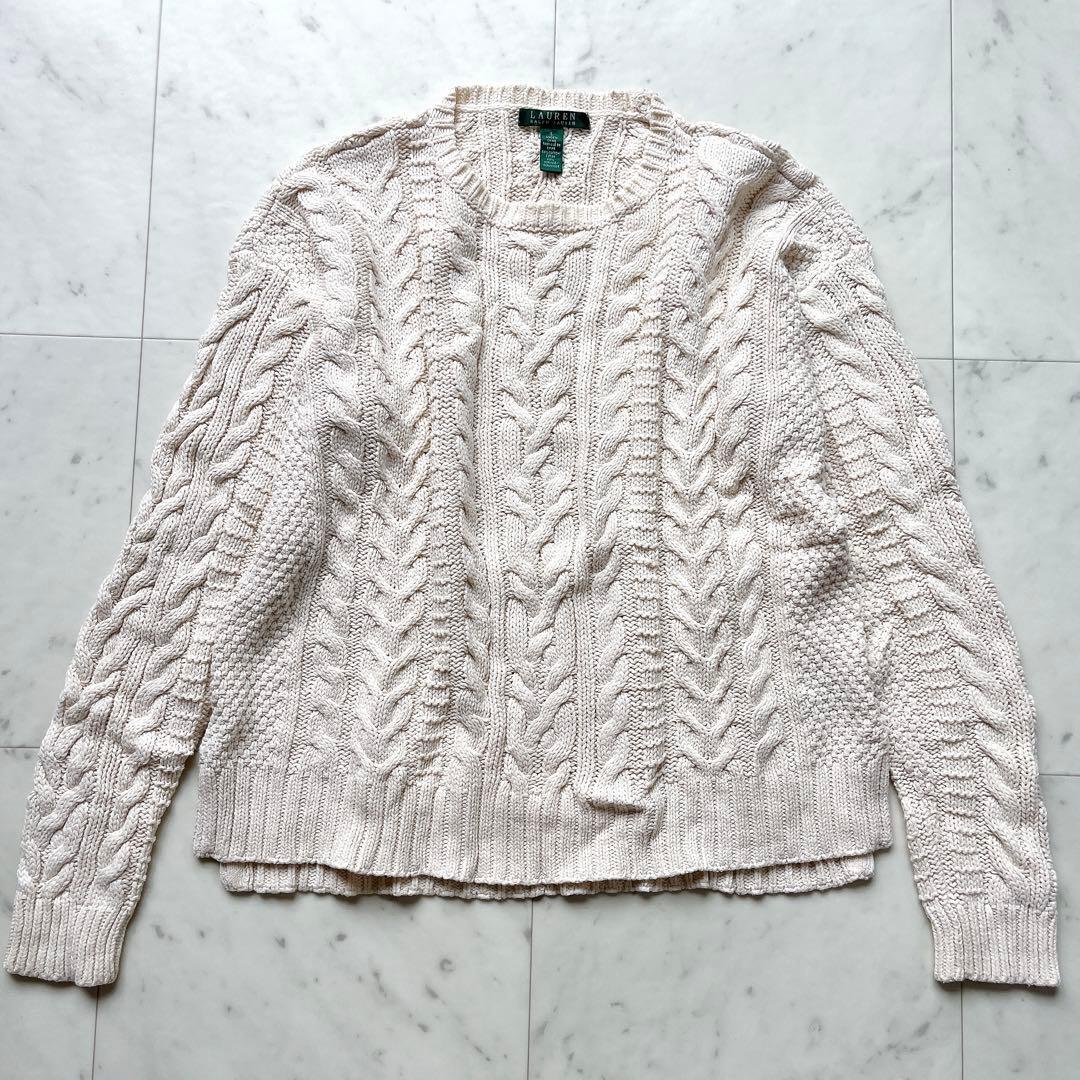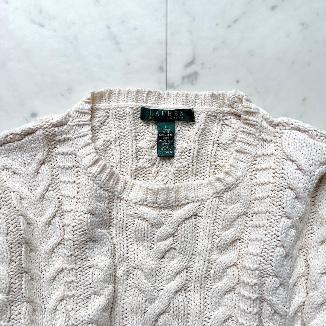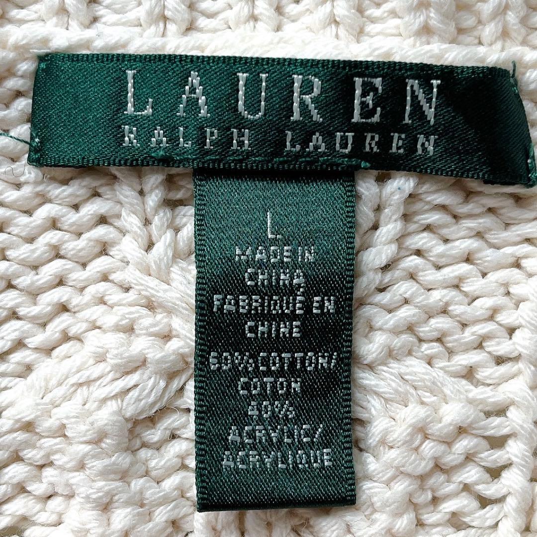 LAUREN RALPH LAUREN ローレンラルフローレン セーター ニット 長袖 ケーブル編み クルーネック コットン アイボリー オフホワイト 白 L 收藏