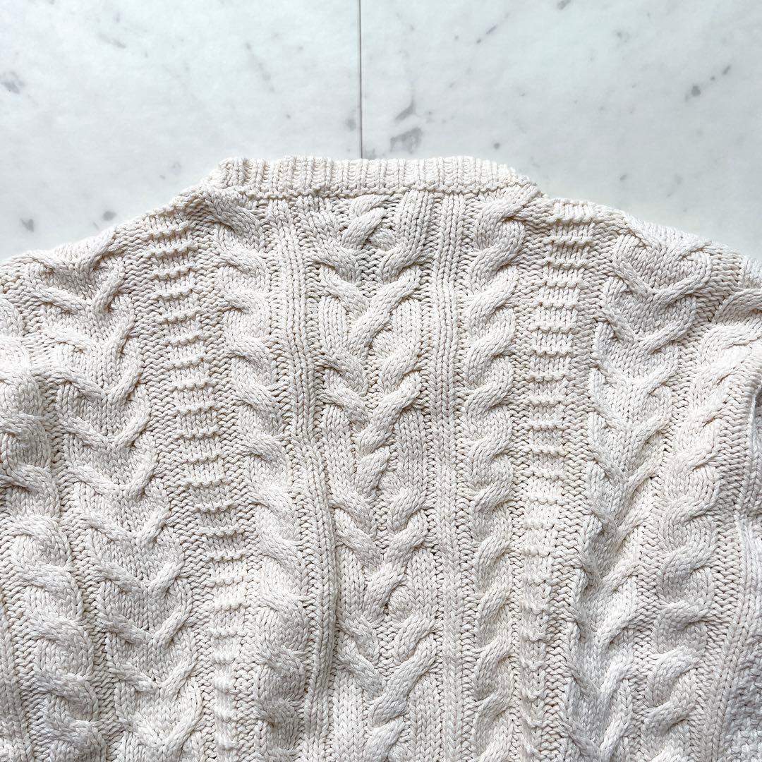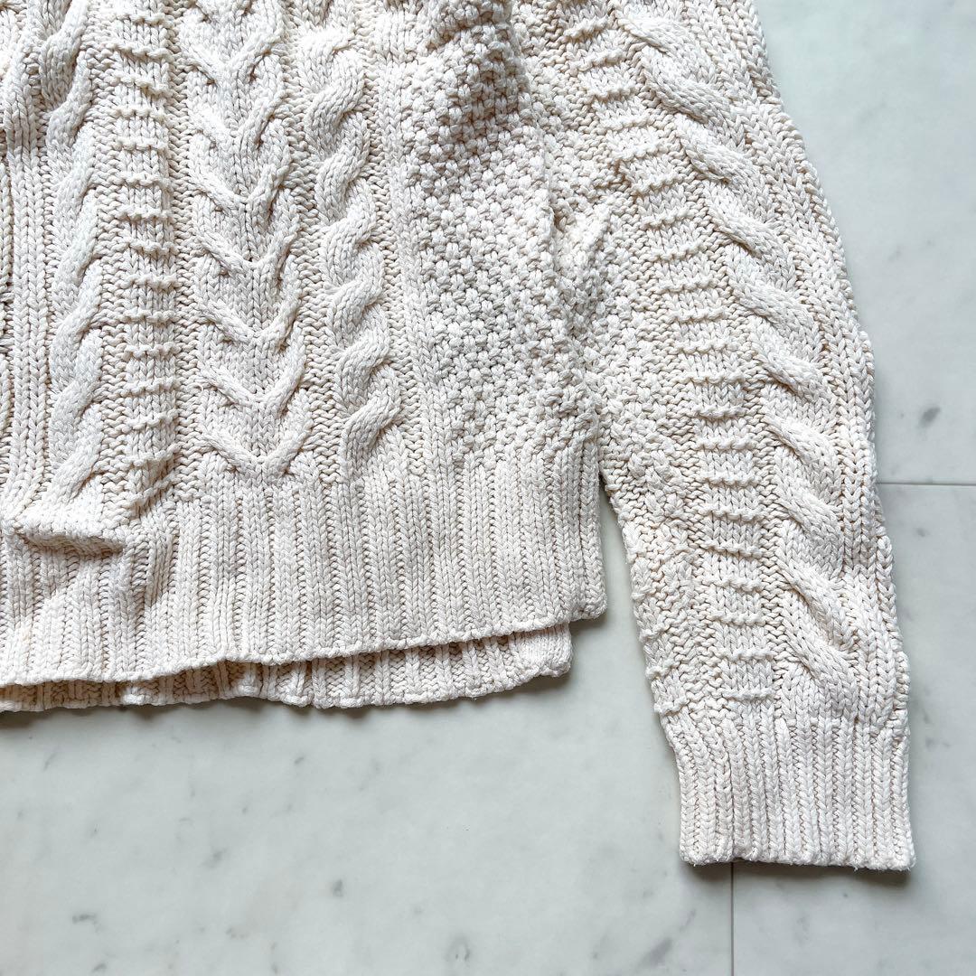 定番のケーブル編みが施された、ざっくりとしたセーターです。