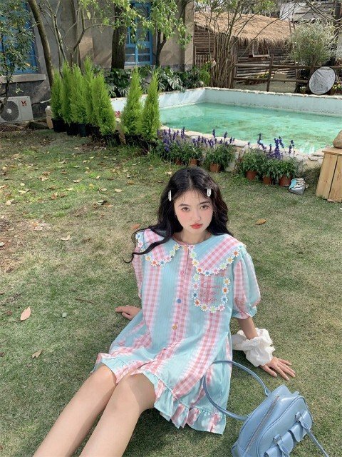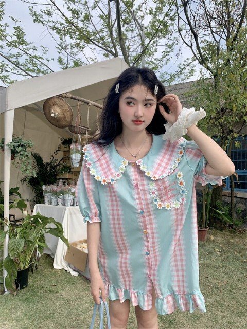 ミニワンピース ショートワンピ 半袖 チェック柄 フリル お出かけ シンプル カジュアル レディース 收藏