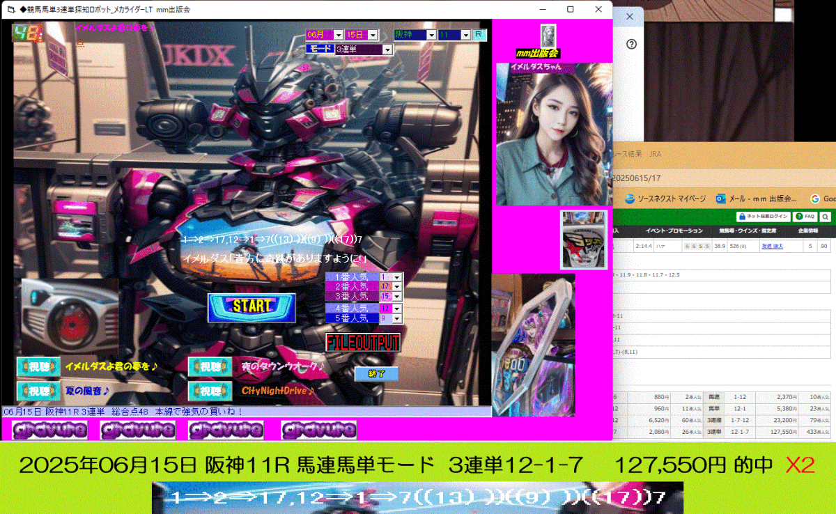 [◆競馬馬単3連単探知ロボット_メカライダーLT][イメルダス「この予想は当選探知機な感じがするね!」]