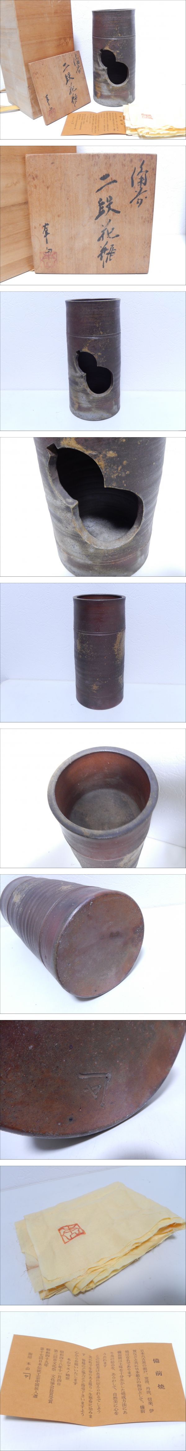 | 【管SH0641】3000円~ 未使用 備前焼 本山ヤエノ 二段花瓶 共箱 花入 花器 古美術 骨董 |