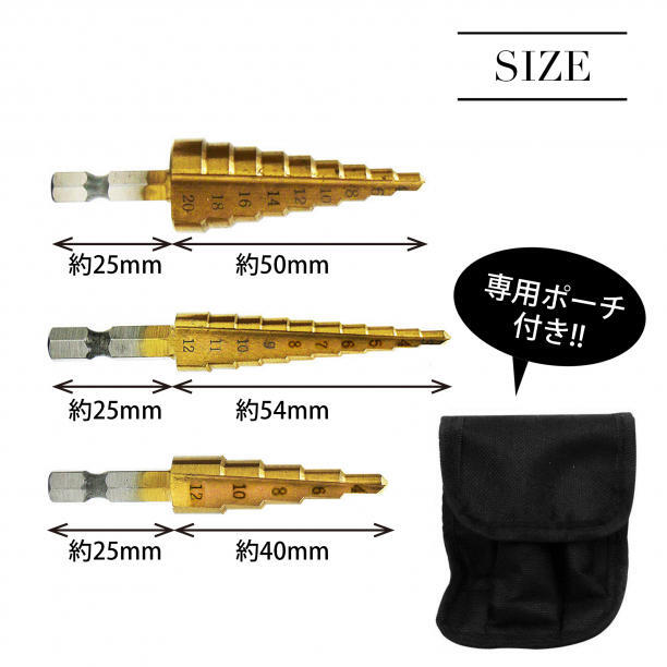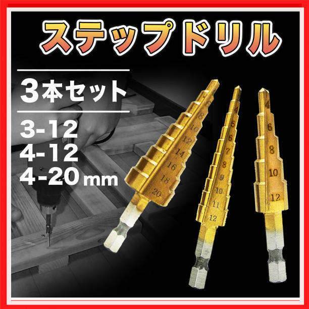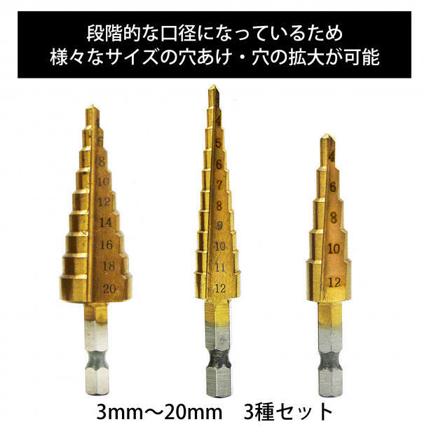 ステップドリル 3本 六角軸 穴あけ ドリルビット インパクトドライバー対応 收藏