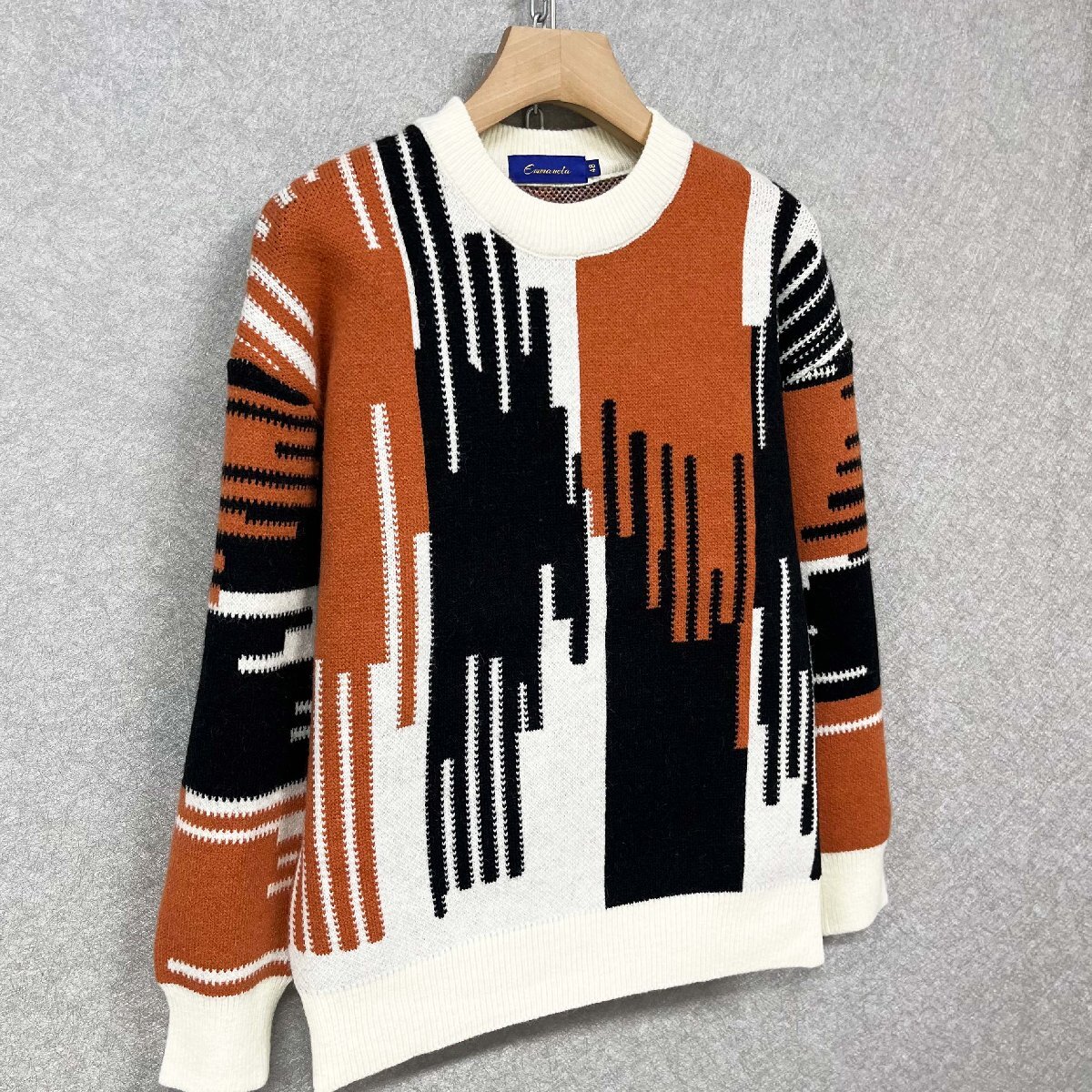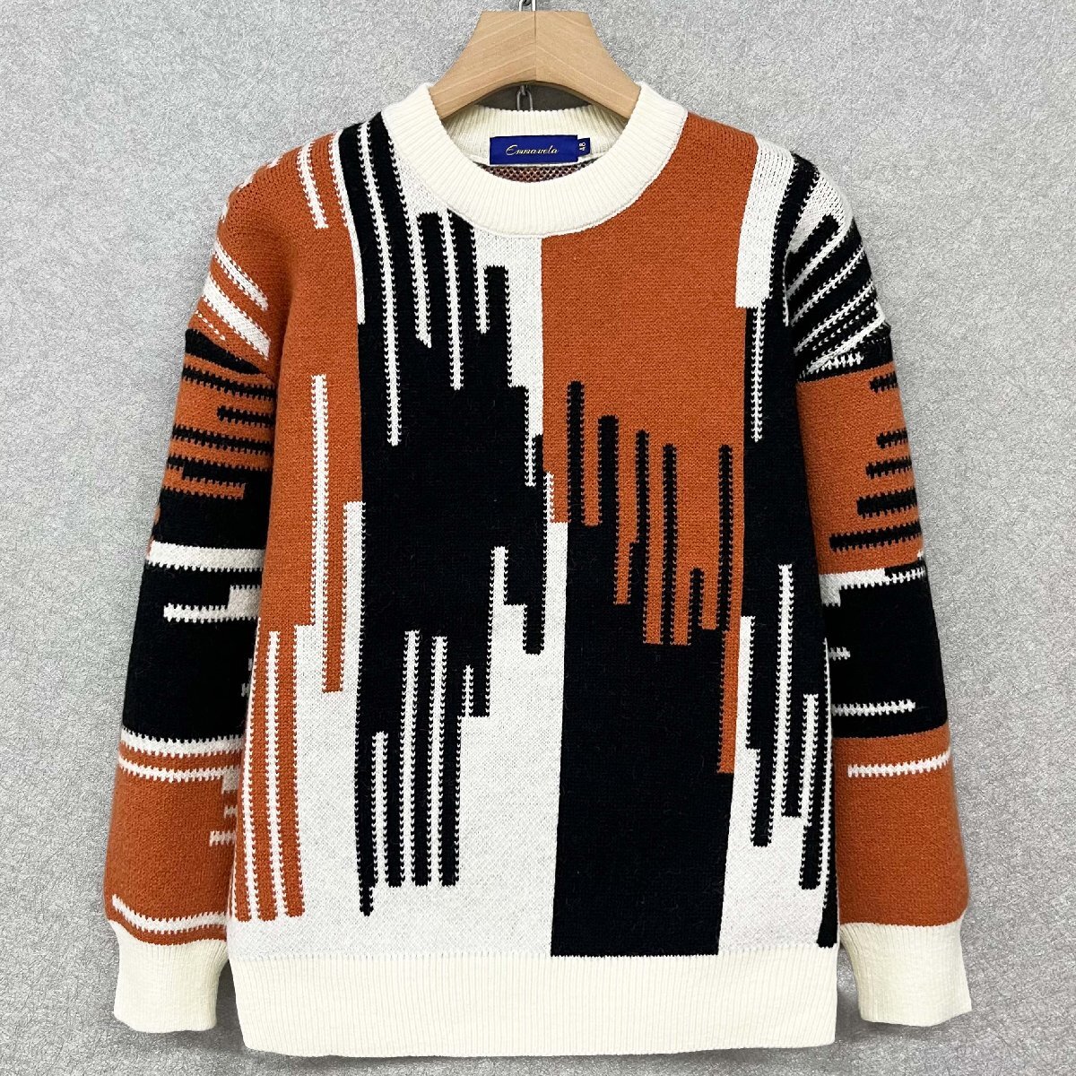 高級・セーター 定価4万◆Emmauela・イタリア・ミラノ発◆ウール混 保温 防寒 ソフト 総柄 ニット カットソー トレーナー トップス M/46 收藏