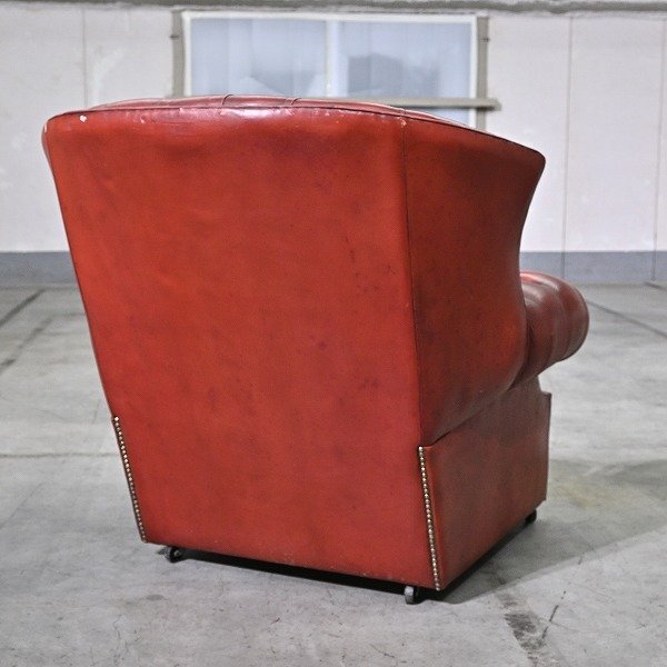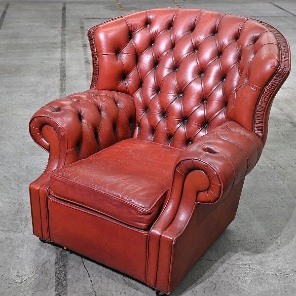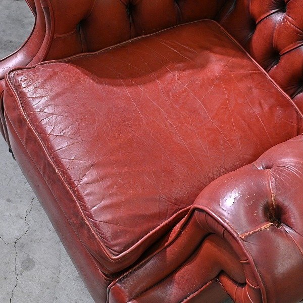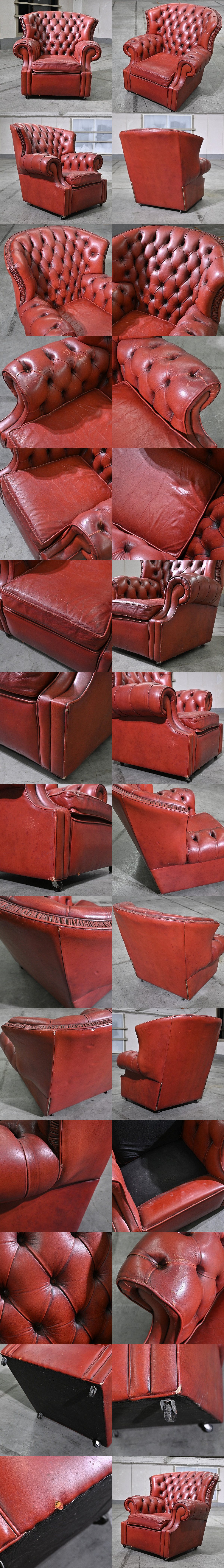 チェスターフィールドチェア 本革 レザー 椅子 一人掛け シングル ラウンジ 英国ヴィンテージ ロールアーム リビング ダイニング 待合室 收藏