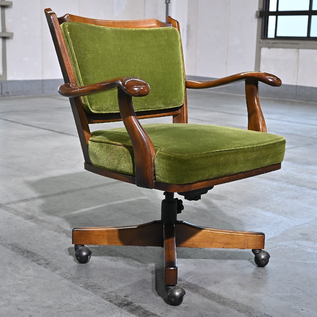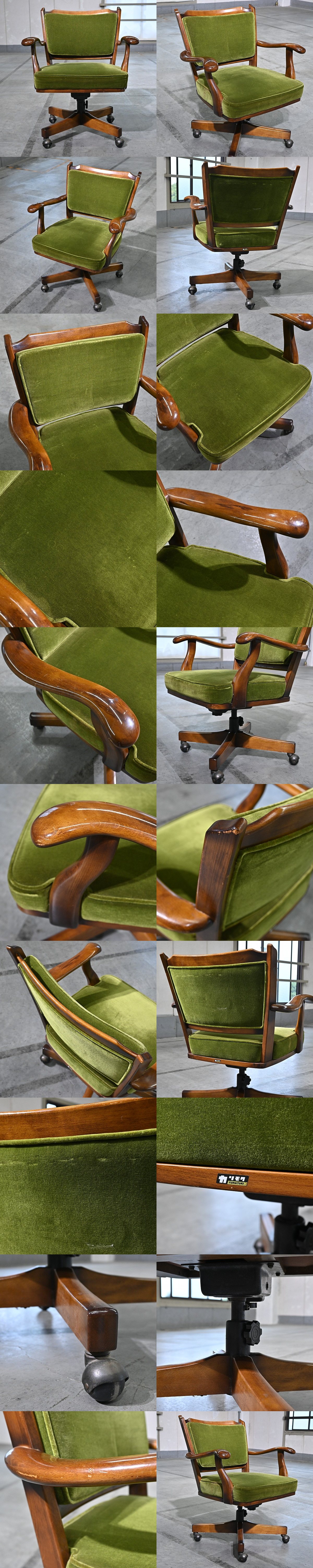 カリモク「コロニアル/COLONIAL」キャスターチェア A オーク無垢材 回転 モケットグリーン アーム リビング クラシカル デスク karimoku 收藏