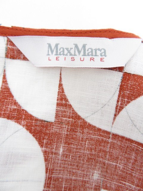 Max Mara LEISURE/マックスマーラ レジャー リネンブラウス 麻トップス ホワイト×ブラウン系 IT42 中古A1美品 AP-B102301 收藏